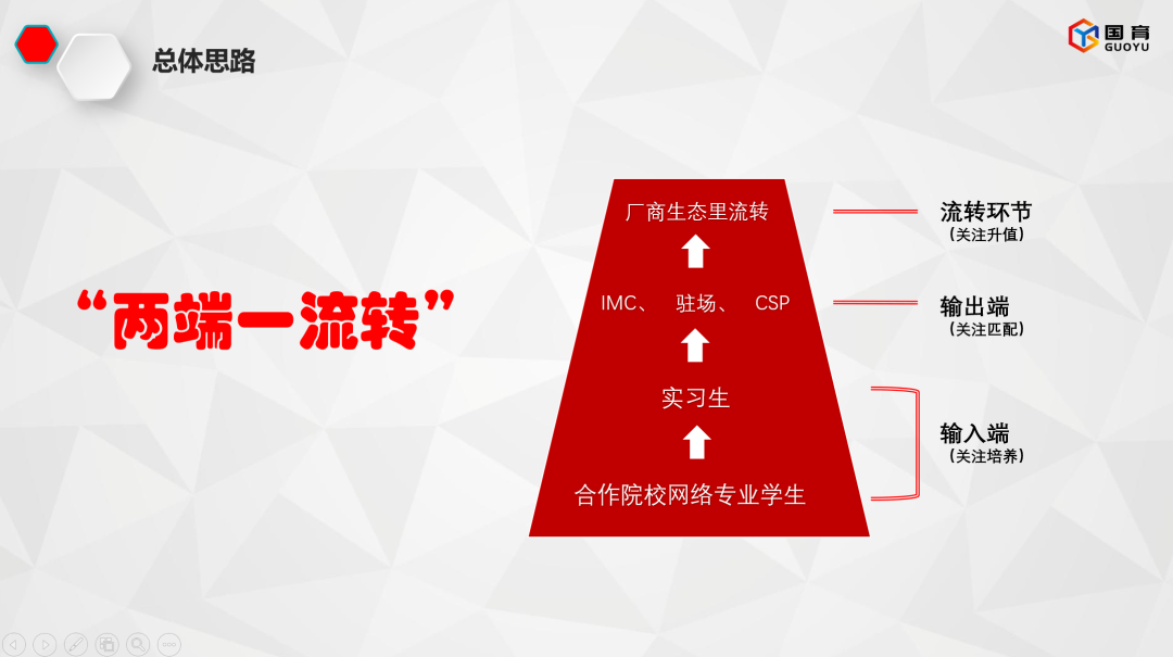 国育科技是一家专注在网络通信领域技能人才培养的高科技专业产教融合和垂直领域技术服务公司,创始团队拥有丰富的服务华为、新华三、锐捷网络、联想、今日头条、腾讯、百度等通信及互联网大厂的经验,并为其中的部分合作伙伴解决海外网络运维用人需求难题。目前是锐捷网络等通信厂商的人才生态战略合作伙伴。熊猫同学一家是面向全球152个国家和地区数字人才培养的国家级高新技术企业,是华为优选级授权培训合作伙伴之一,先后被坚果资本和腾讯投资。根据协议,双方利用自身的核心竞争力,秉承优势互补、互利共赢的原则,建立战略合作伙伴关系。国育科技在人才培养、产教融合上与熊猫同学有广阔的合作空间,未来的合作将秉持“两端一流转”的产业人才培养思路。“两端”即输入端和输出端,关注人才培养的内容与就业。利用“五星教学法”,还原典型工作任务场景、拆解关键流程、确定具体动作、分析可能出现的问题、提供有效的解决方案。多环节跟进教学确保学员能高效掌握厂商技术与产品和具体工作的解决办法,帮助学员提升职场素养。“一流转”即厂商生态流转,关注人才价值提升。熊猫同学和国育科技将携手深入产业需求,依托人才能力模型和价值模型,为学员提供全职业生命周期的产品和服务。服务过程中,以终为始,将学员所掌握的工作任务完成的能力,与相关生态企业的岗位上面临的典型工作场景匹配,帮助不同基础的学员完成不同职业阶段价值跃升。此次熊猫同学和国育科技双方携手,是在数字化大时代下的又一次出发,聚焦ICT产业数字人才培养,将产业链、人才链和创新链有效联通,制定ICT产业数字人才培养创新解决方案。依据产业链岗位标准制定人才培养方案,融合产教,提质培优。打造集人才培养、技能认证、企业赋能为一体的综合人才服务体系。熊猫同学立志成为产业侧的“数字人才助手”,助力中国数字化转型。随着科技发展,数据和技术已逐渐替代劳动力成为经济的生产要素和驱动力,经济发展已进入新的数字经济时代。国家对技术体系建设的推行,加之企业大规模数字化转型的趋势,使就业市场产生大量对数字化人才的需求。随着数字化普及程度加深,数字化赋能的人群规模将迅速增长,中国会逐渐步入数字经济时代。数字产业的发展核心在于人才,熊猫同学将依托自身多年的数字化转型实践,携手国育科技和其他众多合作伙伴,共同制定完善的数字人才标准,为行业数字化转型升级贡献自己的力量。